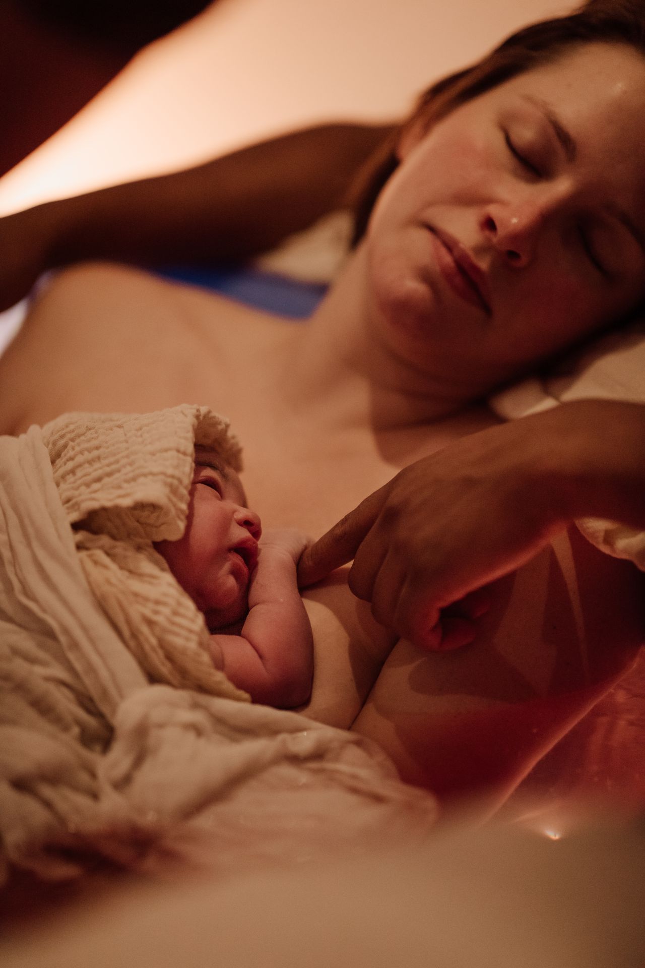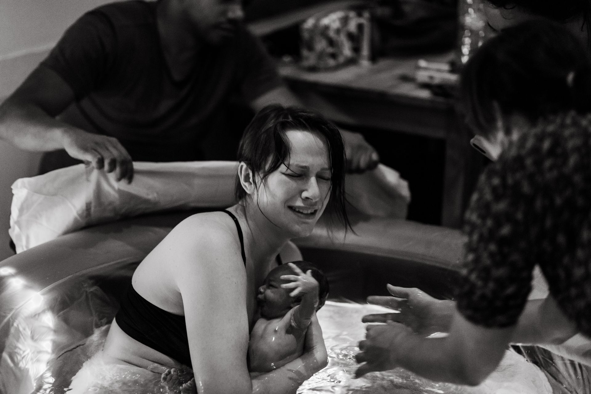 Frauke Verreyde, zelf mama en geboren in bad met De Geboortepraktijk, weet precies hoe ze zich als fotograaf mag opstellen. Onzichtbaar. Als een stille getuige. Ze neemt een fly on the wall positie aan, observeert zonder te storen. Vele ouders merken zelfs niet dat ze nog aanwezig is.